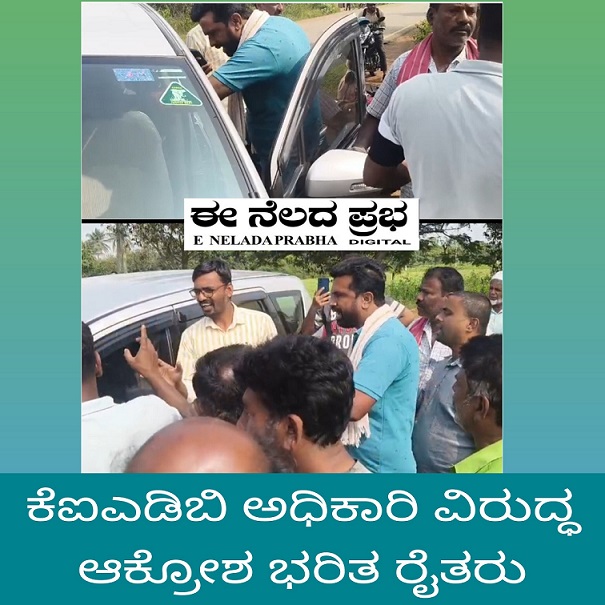 ಕೆಐಎಡಿಬಿ ಅಧಿಕಾರಿಗಳನ್ನು ಕಾರಿನಿಂದ ಇಳಿಯಲು ಬಿಡದೆ ವಾಗ್ವಾದಕ್ಕೆ ಇಳಿದ ರೈತರು ಮಾತಿನ ಚಕಮಕಿ ನಡೆಸಿದಲ್ಲದೆ ಪ್ರಾಣ ಬಿಟ್ಟೆವು ಜಮೀನು ಕೊಡುವುದಿಲ್ಲ.ನಿಮ್ಮ ವಾಹನಗಳನ್ನು ಸುಟ್ಟುಹಾಕುತ್ತೇವೆ ಎಂದು ತೀವ್ರವಾಗಿ ಎಚ್ಚರಿಕೆನೀಡಿದ್ದಾರೆ.